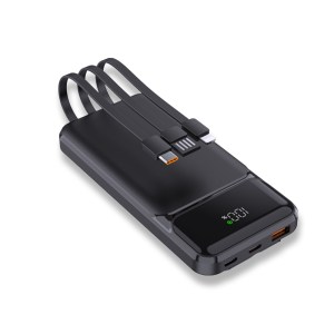 Kapasite: 10000 mAh Yüzde Gösterge Ekranı 22,5W Hızlı Şarj Giriş: Type-C, iPhone Çıkış: USB Dahili Kablolu Çıkış: Type-C Ağırlık: 236 gr Ölçü: 145 x 72 x 16 mm