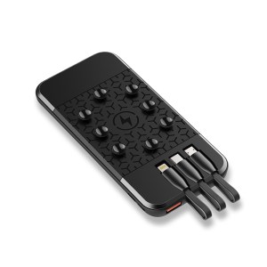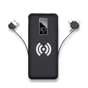 Kapasite: 10000 mAh 5W Wireless Şarj 4 Kademeli LED Gösterge Çıkarılabilir Dahili Kablolu Çıkış: iPhone, Type-C, Micro USB Giriş: Micro USB, Type-C Çıkış: Çift USB Ağırlık: 195 gr Ölçü: 155 x 70 x 16 mm