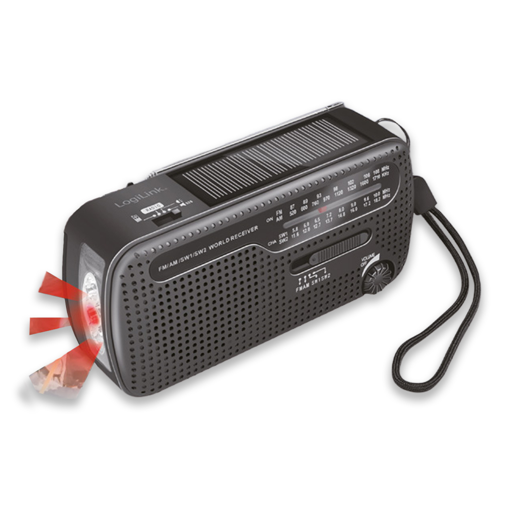LED el fenerli ve USB şarj portlu el kranklı radyo.